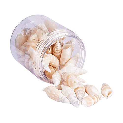 PandaHall Elite 180-200G Conchiglie Spirale Conchiglia con Foro per Gioielli Collane Bracciali Decorazione Artigianato Fai da Te, PaleGoldenrod, 42-50x11-16x11-16mm, Foro:1-2mm, Circa 180-200g/box
