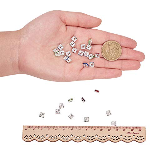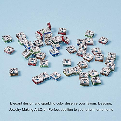 PandaHall Elite 50PCS Perline Vetro Strass Quadrangolo Grado A Perline Distanziatori Ottone Colore Argento+Misto, 6x6x3mm