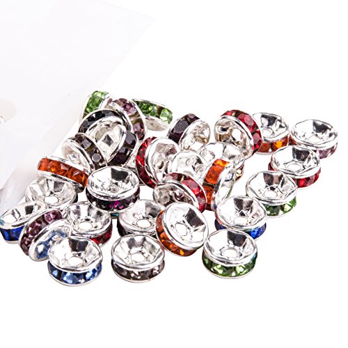 PandaHall Elite 50PCS Perline Vetro Strass Rotonde Grado A Perline Distanziatori Ottone Senza Nichel Perline Colorate, 6x3mm