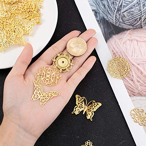 PandaHall Elite 72pcs 12 Stili Connetori Link Componenti in Ottone filigrana Ciondolo per Fare Orecchini lampadario bigiotteria Kit per orecchino Fai da Te, d'oro