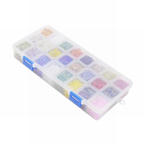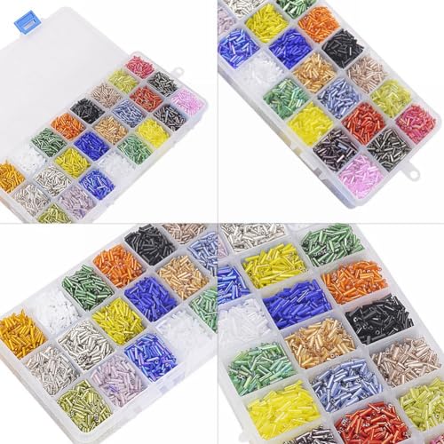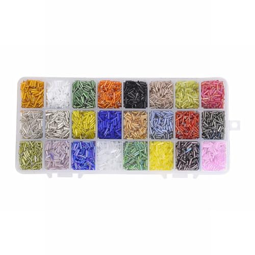 PandaHall Elite- 8400 PCS 24 Colori Perline Bugle Perline in Vetro Tubo Perline Fodera in Argento per creazione di Gioielli, 6x1.8mm, Foro: 0.6mm