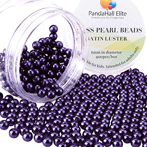 PandaHall Elite - Confezione di Perline da 400 pezzi, ca. 6 mm, in vetro satinato, luminose, Perle rotonde per gioielli fai da te, Vetro, Veilchen, 6 mm