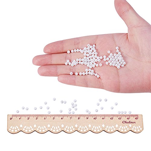 PandaHall Elite 2000 Pezzi 3-3.5mm Perline di Vetro Perline Rotonde Perle per Bigiotteria Fai da Te, Bianco, Foro: 0.7-1.1 mm, Circa 2000 Pezzi/Scatola