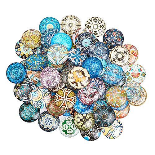 PandaHall Elite 70 Pezzi 70 Stili 24.5-25x6-7mm Half Round/Dome Immagine Stampata Cabochons in Vetro per creazione di Gioielli, Serie Floreale