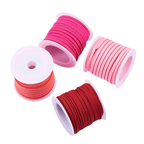 PandaHall Elite 30 Rolls Corda di Faux Suede per Creazione Gioielli Fai da Te, Colore Misto, 3x1.5mm, Circa 5m / Roll, 30rolls / Set