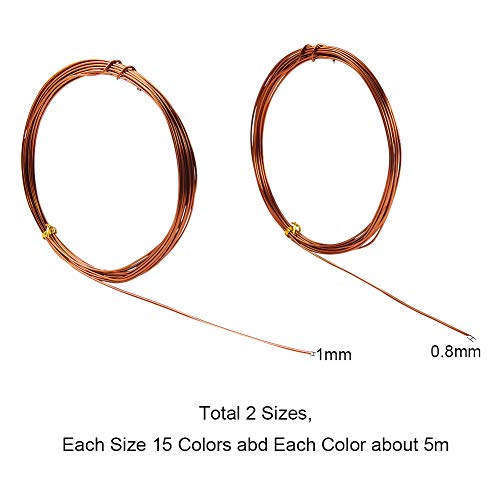 PandaHall Elite 30 Rotoli 15 Colori 2 Formati Filo di Alluminio, 0.8mm / 1mm Filo borda Gioielli per orecchino Braccialetto Fai da Te