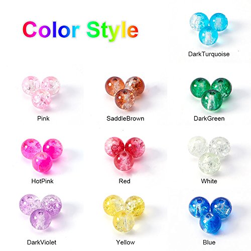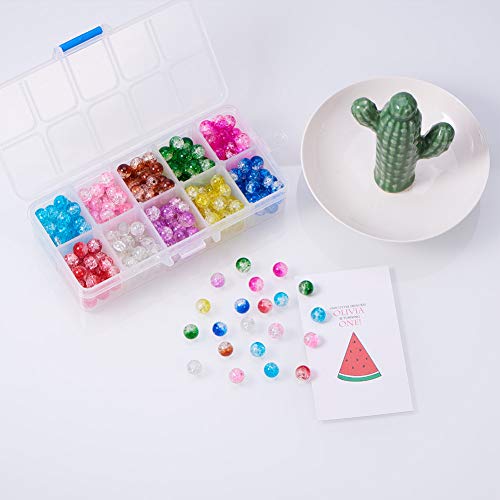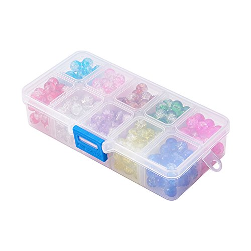 PandaHall Elite 1 Scatola 300PCS 8mm Perline di Vetro Crackle Perline Colorate Rotondo per Fare Gioielli Fai da Te, Foro: 1,1-1,6 mm, Circa 32 Pezzi/compartimento, Circa 300 Pezzi/Scatola