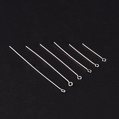 PandaHall Elite 1 Scatola 600PCS Chiodini Occhiello in Ottone per Creazioni di Gioielli Fai da Te, Argento, 24-60x0.7mm, Foro: 2mm, About 600pcs/box