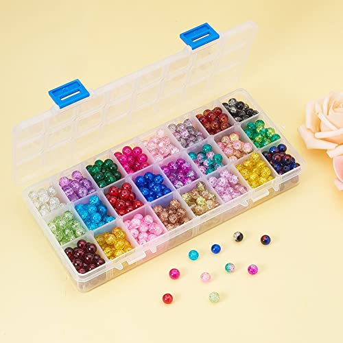 PandaHall Elite 1 Scatola 600PCS 8MM Perline di Vetro Crackle Perline Colorate Rotondo per Fare Gioielli Fai da Te, Foro: 1.3-1.6mm, Circa 25pcs/comparato, 600pcs/scatola