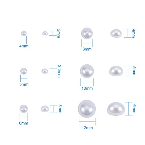 PandaHall Elite 1 Scatola 690PCS Perline Perla in Plastica ABS Perla Mezza Rotonda, Colore Bianco, 4~12x2~6mm