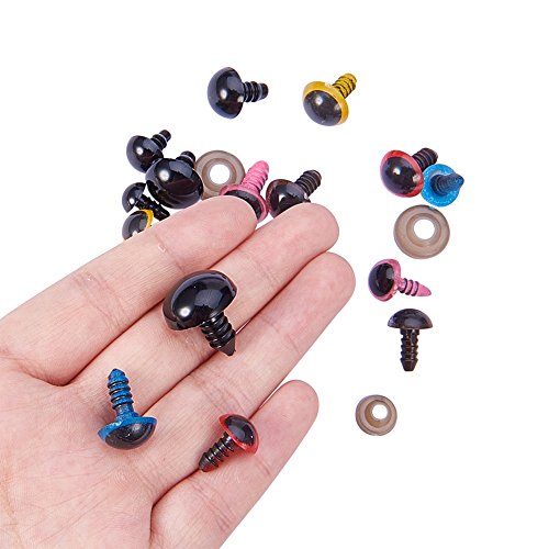 PandaHall Elite 1 Scatola 107 Paia 8-16mm Occhi di Sicurezza Occhi di Plastica Colorati con Rondelle per Bambola Fai da Te, Circa 107paia/scatola