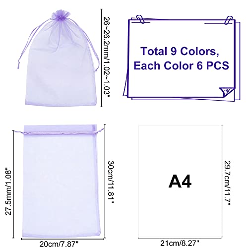 PH PandaHall 54pz Grandi Sacchetti di Organza 9 Colori Sacchetti di Carta Regalo di Organza Sacchetti di Protezione di Frutta da Giardino per Favore di Festa di Nozze Battesimo Natale, 30x20 cm
