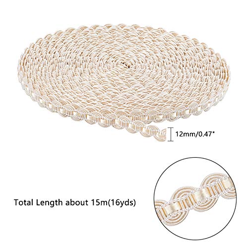 PH PandaHall 15m 12mm Nastro di Nylon Intrecciato Modello Curvo Gimp Treccia Trim Pizzo per Costume Artigianato da Cucito Fai da Te Decorazione Domestica, Bianco Crema