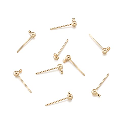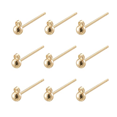 PandaHall - 10 orecchini a perno in ottone, a forma di sfera, 15 x 5 x 3 mm, placcati in vero oro 18 kt, con anellino, per la realizzazione di orecchini pendenti e gioielli fai da te