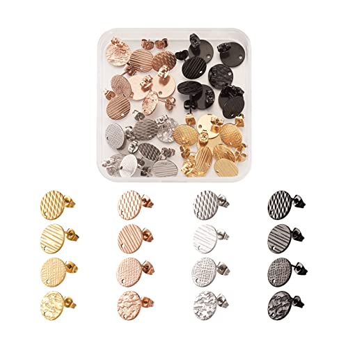 PandaHall - 32 orecchini a perno, piatti e rotondi, 4 colori, in acciaio INOX 304, con chiusure, per la realizzazione di orecchini e gioielli fai da te