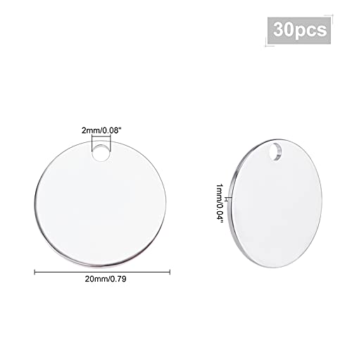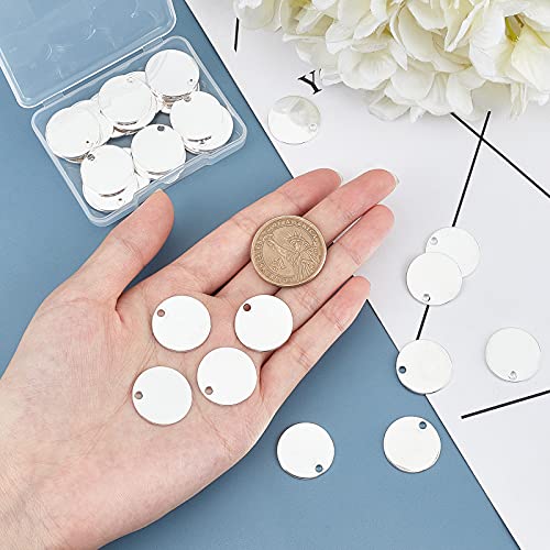 PandaHall 30 pz Ottone Stamping Blank Tag 20mm Round Coin Charms Pendente Stamping Blanks with Hole Dog Tag Blanks for Portachiavi Targhetta Lavoretto Bordo Orecchino Collana, 2mm Foro, Platino
