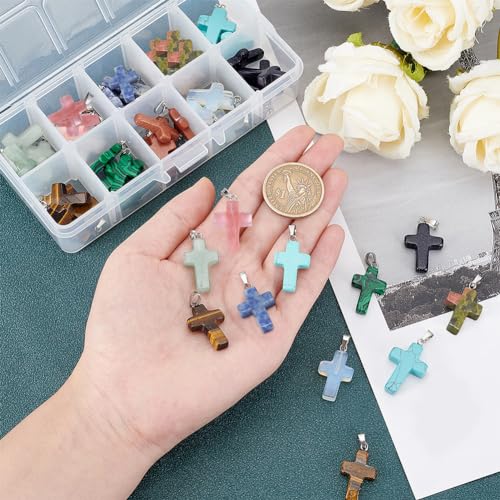PH PandaHall-Pendente Pietre Dure, Croce, Stone Misto,26x15x4mm, Foro: 6x3mm