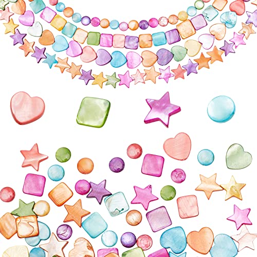 PH PandaHall Perle di Conchiglia d'Acqua Dolce Naturale, 4 Stili Cuore Stella Quadrata Piatta Rotonda Conchiglie 137 Pezzi Oceano Spiaggia Conchiglia Pendenti e Ciondoli per Decorazione della Casa