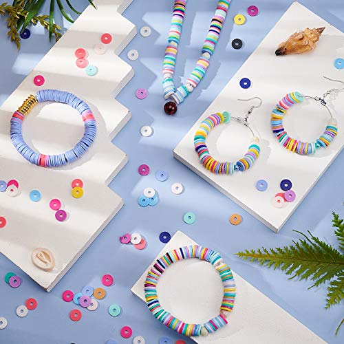 PandaHall Perline di Argilla Heishi, 5700 Pezzi 15 Colori 8mm Perline Disco in Vinile Perline Piatte Rotonde Fatte a Mano in Pasta polimerica per Orecchini hawaiani Girocollo Collana Braccialetto