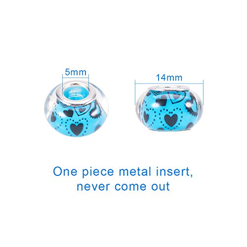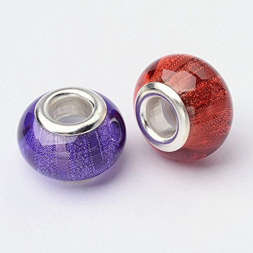PandaHall 100 PCS Perline in Lega di Cristallo Strass Grande Foro Europeo Perline, Colore Argento, 11 x 6 mm, Foro: 5 mm, Mixed Color, 14mmx5mm
