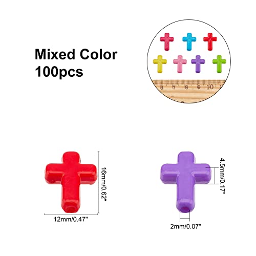 PandaHall 100 perline di croce acriliche, ciondoli a croce di colori misti, perline di massa intercalari colorati, 16 x 12 x 4,5 mm, foro 2 mm