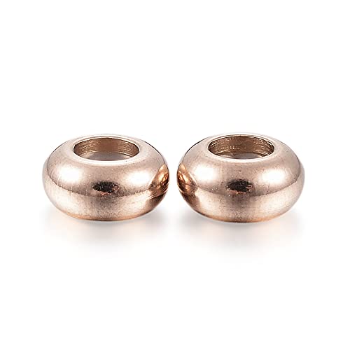 PandaHall 10 perline distanziali in acciaio inox Rondelle da 8 mm in gomma oro rosa all'interno di perline in metallo tappo perline per collane, bracciali e gioielli