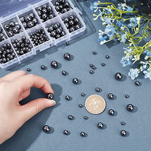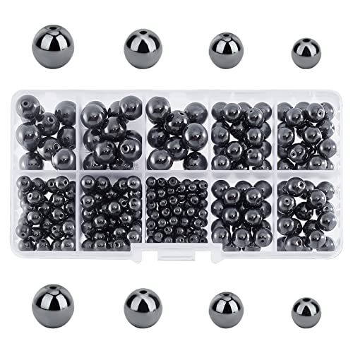 PandaHall Perline di Ematite Nera, 316 Pezzi 4 Taglie Perle di Pietre Preziose Rotonde Perline di Energia Sciolte per Orecchini Bracciali Collane Gioielli Fai da Te