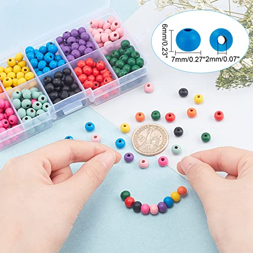 PH PandaHall 7mm Perline di Legno Rotondo Colorate Palline di Legno per Lavoretti Lavori a Uncinetto Rosari Braccialetti Collane Gioielli Fai da Te, Foro: 2mm, 1 Scatola 340-350PCS
