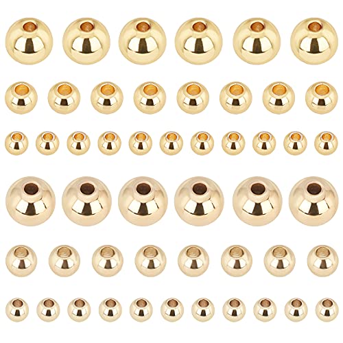 PandaHall Perline Placcate Oro 3 Dimensione, 180pcs 3mm 4mm 6mm Perline Distanziali in Metallo Rotondo Liscio Senza Soluzione di continuità Perline in Ottone con Sfere in Oro per Gioielli