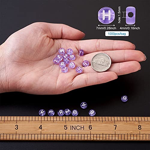PandaHall - 1.000 perline sfuse, in acrilico, forma rotonda e piatta, 7 mm, trasparenti, con lettere dalla A alla Z, per la creazione di gioielli e artigianato fai da te, foro: 1,5 mm, lilla