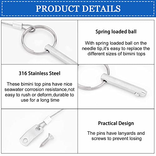 PandaHall 4 Set Perno A Sgancio Rapido Bimini Top Pin con Cordino Impedisce La Perdita e Viti di Installazione Completo 316 in Acciaio Inox Perno Hardware Marino per Ponte Barca Aste di Supporto