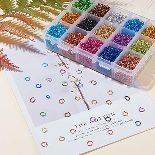 PandaHall 6450 Pezzi 15 Colori Anelli Aperti in Alluminio 6x0.8mm Anelli per Bigiotteria Fai da Te Girocollo collane Braccialetto Catena Maille Chainmail Gioielli