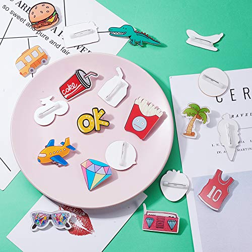 PandaHall 20 Pezzi 20 Forme Spille in Acrilico con Pin in Ferro per la Decorazione della Borsa, Colori Misti