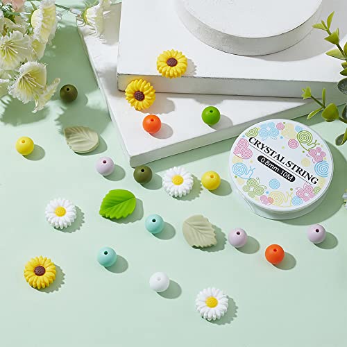 PandaHall 44 pezzo di Perline In Silicone, 12mm Perline Grosse Fiore Foglia Perline di Gomma Margherita Girasole Perline Sfuse con 10 Iarde / 10m Filo per La Bracciali Collane Creazione di Gioielli