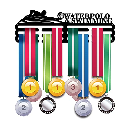 PH PandaHall Porta Medaglie Espositore Porta Medaglie WATERPOLO NUOTO Porta Medaglie Premi Nastro Cheer 3 Linee Porta Premio Sport Montaggio A Parete Cornice In Ferro Oltre 60 Medaglie Gioielli