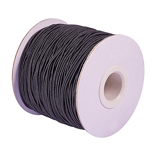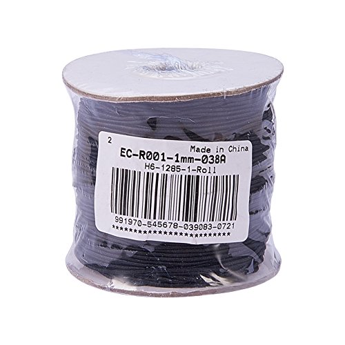 PandaHall 1 Rotolo Filo Cordino Elastico Filo Nylon Esterno e Interno in Gomma, Colore Nero, 1mm, 100m/ Rotolo