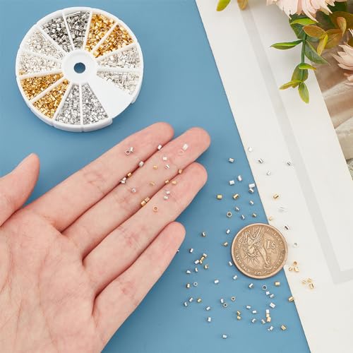 PH PandaHall 1 Scatola 3 Colori Perline Ottone Perline per Bigiotteria Perline Tubo Crimp Colore Misto, 1.5-2x1.5-2mm, Foro: 1-1.5mm