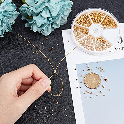 PH PandaHall 1 Scatola Perline Tubo Arricciate Perline per Bigiotteria Tube Crimp Beads in Ottone Colore Oro 1.5-2.5mm in Diametro