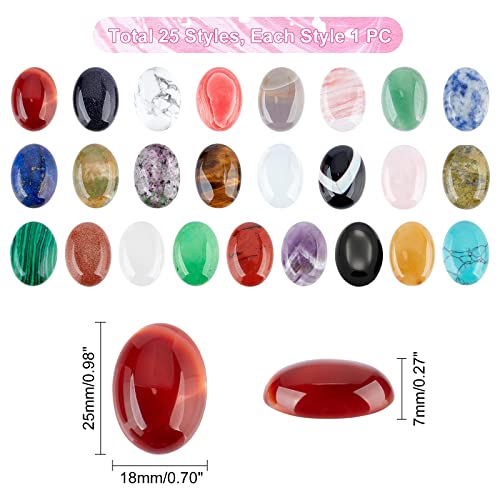 PH PandaHall 1 Scatola 25 Pezzi Cabochons Ovale per Gioielli Fai da Te, Misto Pietra, 25x18x7mm, 25pcs / Box