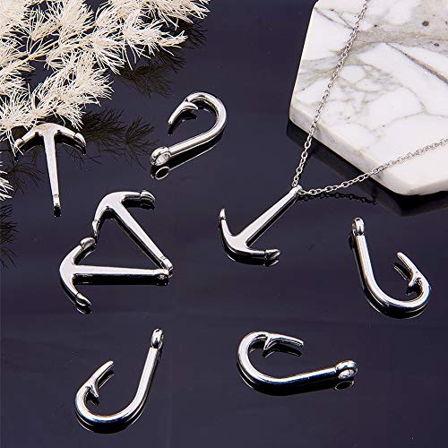 PandaHall 2 Stili 30pcs Pendenti della Lega di Stile Tibetano Argento Antico Ancoraggio Nautico Pendente Gancio di Pesci amuleti per monili Che Fanno