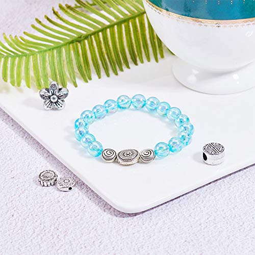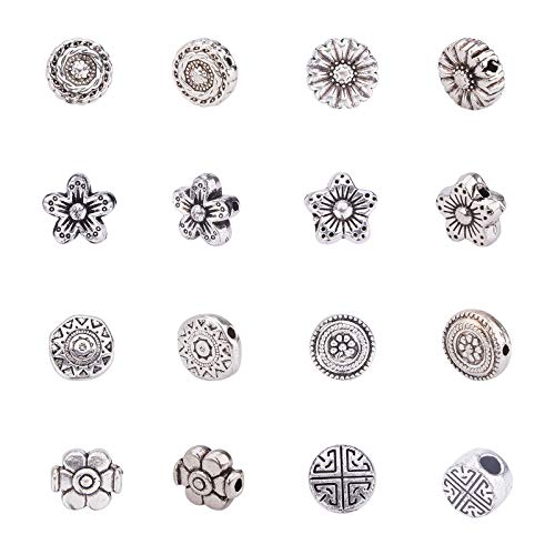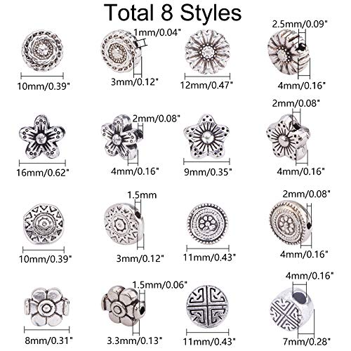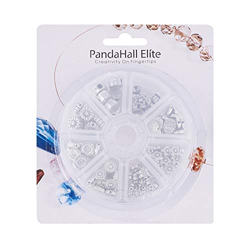 PandaHall 8 Stili Circa 149 Pezzi di distanziatori in Argento Antico distanziatori Piatti tondi in Lega tibetana per la creazione di Gioielli con Bracciale