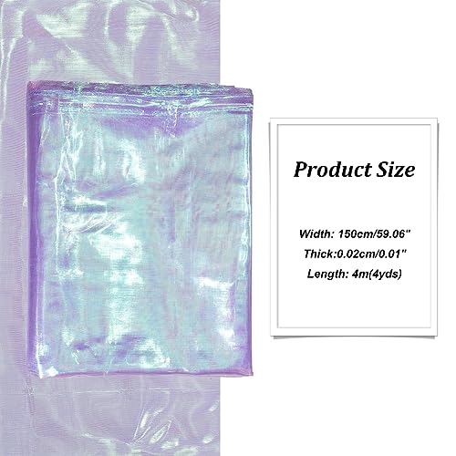PH PandaHall Tessuto In Pizzo Organza Da 4.3 iarda/4m, Tessuto In Organza Iridescente Trasparente Viola Nastro In Tessuto Lucido Magico per Abito Spettacolo Teatrale Fai-Da-Te, 1.5 m di Larghezza