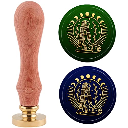 Timbro del sigillo della dea: il motivo di questo sigillo è una dea, impreziosito da stelle, luna e rami, che sembra molto sacro e misterioso. Adatto a te a cui piacciono le fasi lunari. Può anche dare più carattere e punti salienti al tuo lavoro fatto a mano.