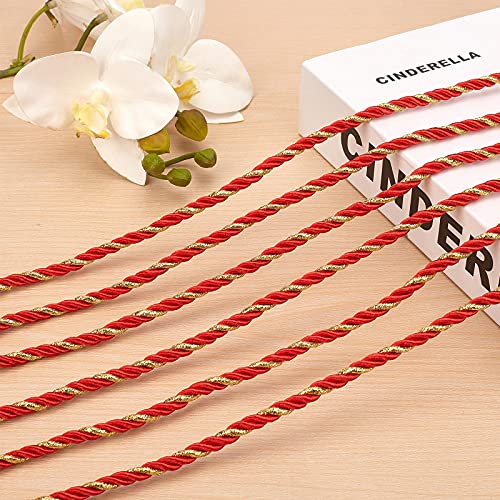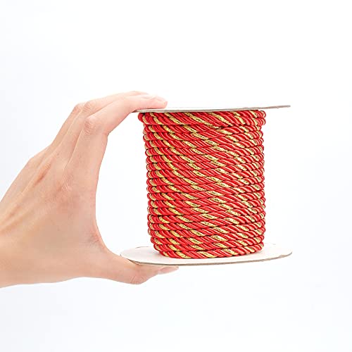PandaHall 25 Yards 5mm Corda Intrecciata in Nylon Filo di Nylon Spessa Rosso Arancione Corda Decorativa A 3 Strati Corda in Raso Lucido Corda per La Decorazione Domestica, Ornamento di Natale