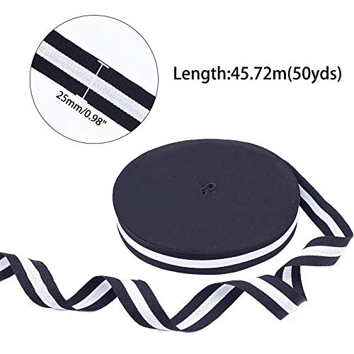 PandaHall 50 Yards Stripe Pattern Nastri Nastro in Tessuto Grosgrain Nero Fascia Piatta per Confezioni Regalo, composizioni Floreali, Fiocchi per Capelli, Decorazioni per Feste di Matrimonio, 25 mm