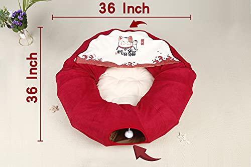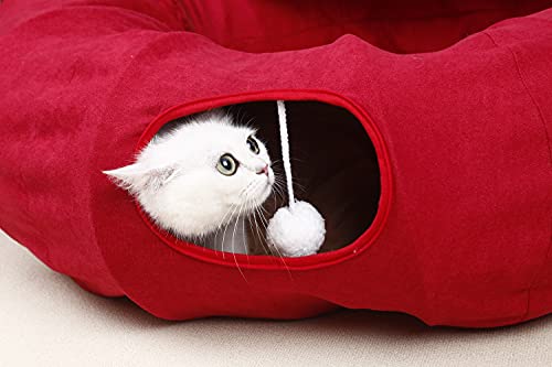 Pandawant Tunnel per gatti da gioco, per gatti al chiuso, con tappetino centrale rimovibile, pieghevole, morbido, per gatti, giocattoli per animali domestici, letto per interni rosso
