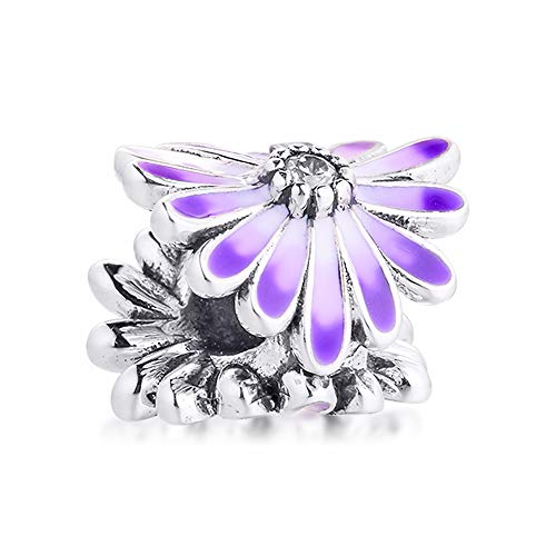 PANDOCCI 2021 - Ciondolo a forma di fiore viola, in argento 925, adatto per braccialetti Pandora originali