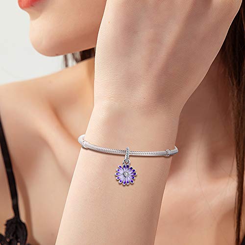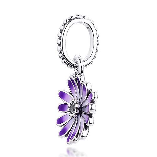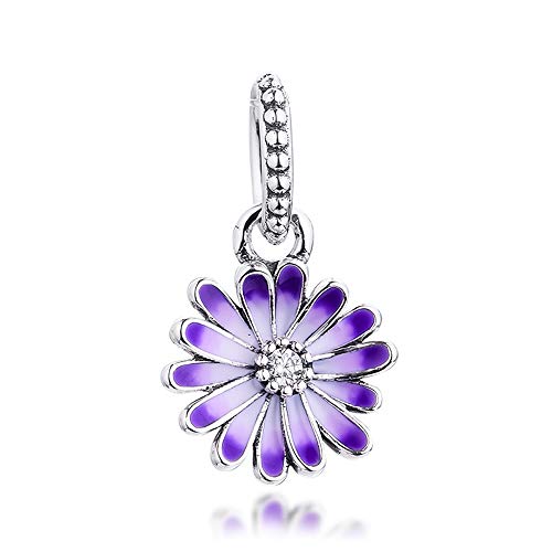 PANDOCCI 2021 - Ciondolo a forma di fiore viola, in argento 925, adatto per braccialetti Pandora originali
