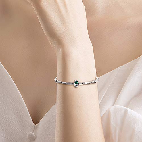 PANDOCCI 2021 - Ciondolo a forma di solitario rotondo, in argento 925, adatto per braccialetti Pandora originali, gioielli alla moda (verde)