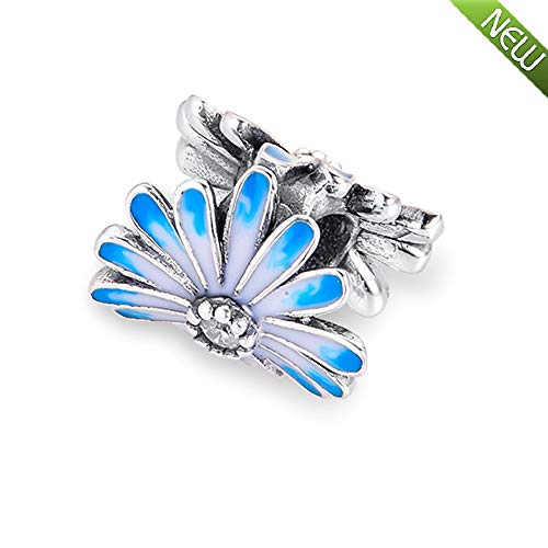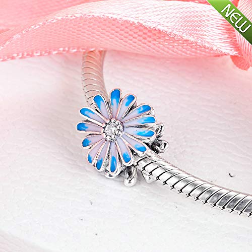 PANDOCCI 2020 Primavera Blu Margherita Fiore Perlina Argento 925 Fai da Te Adatto per bracciali Pandora Originali Fascino Gioielli di Moda